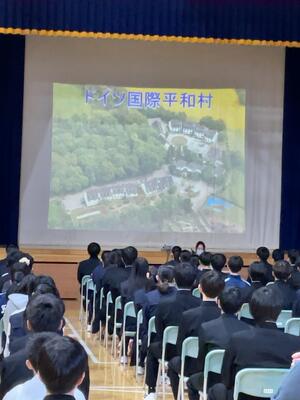 最後に3年生へ向けて、①自分やみんなの権利を理解すること、②共感と寛容の精神、③好奇心を持つこと、④英語はもちろん日本語も大切にすること、⑤物事を多面的に見ること、⑥メディア情報リテラシーを高めること、の6つのポイントを示してくださいました。 国際理解に関する内容でしたが、人との関わりや、相手を知ろうとする姿勢の大切さにも触れられ、身近な人から地域、そして世界の人々へと視野を広げ、互いに理解し合う社会の大切さを考える機会となりました。