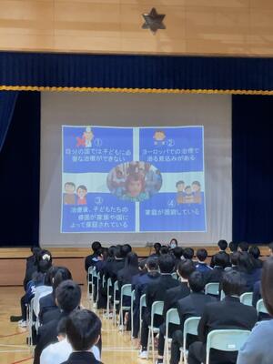 本日は、心に響く道徳教育の一環として、作業療法士の山石様をお迎えし、講話をしていただきました。