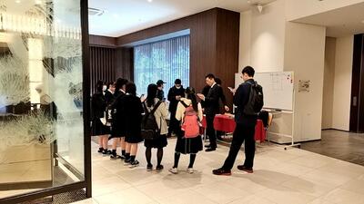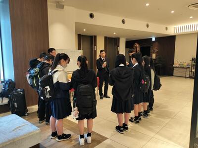 修学旅行2日目(4月26日)、夕食後も元気にレクを楽しんでいます。