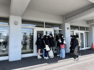 4月3日(水)、西中玄関前で新一年生の学級名簿を発表しました。