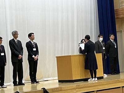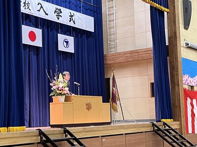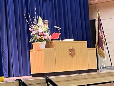 式の中では、新入生代表の中島さんが堂々とした態度で中学校生活での抱負を述べ、