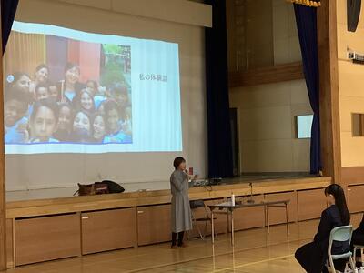 10月24日(金)5・6校時、長年ユネスコでご活躍された諸橋淳さんをお招きし、「世界に飛び出す仕事」をテーマに3年生へご講話をいただきました。 これまでの豊富なご経験を、スライドを交えて分かりやすくお話しくださいました。